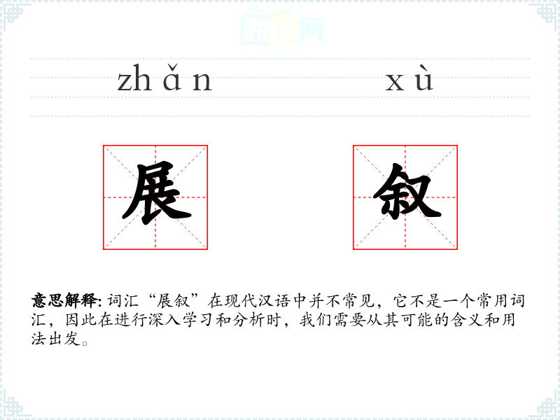 词汇“展叙”在现代汉语中并不常见,它不是一个常用词汇,因此在进行深入学习和分析时,我们需要从其可能的含义和用法出发。