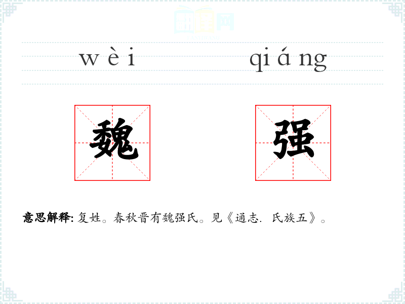 复姓。春秋晋有魏强氏。见《通志.氏族五》。