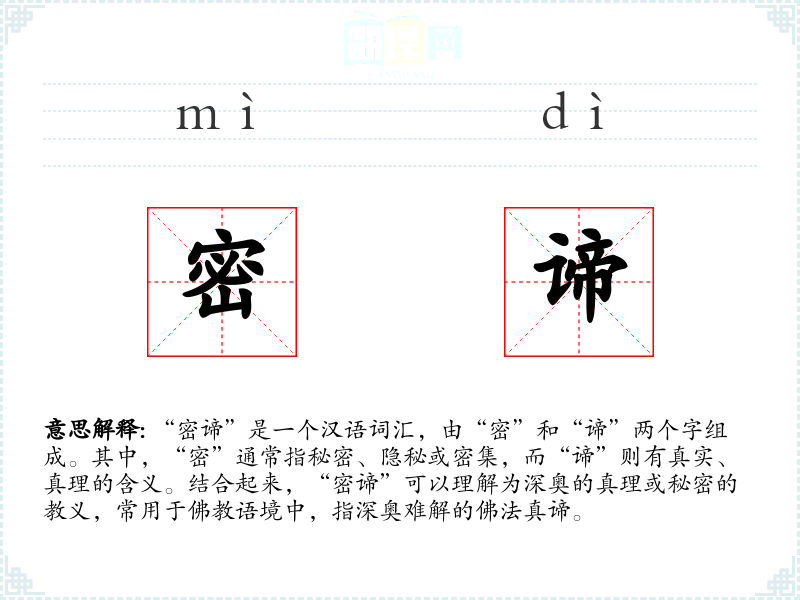 "密谛"的意思解释、密谛是什么意思由翻译网汉语词典查词提供。