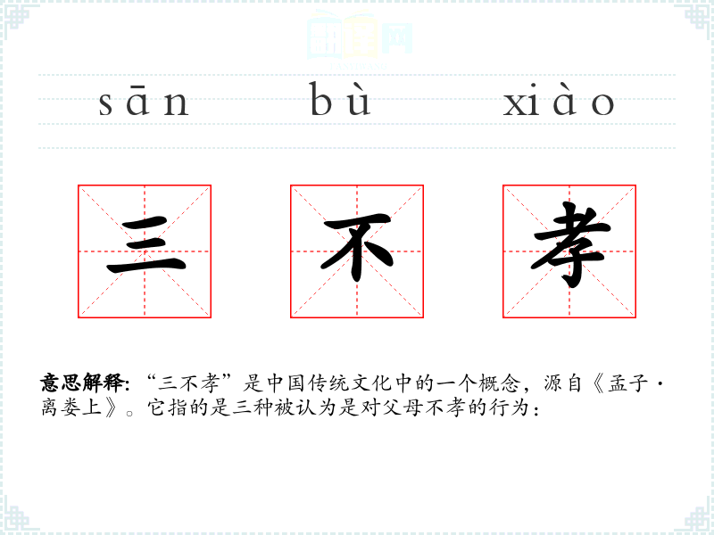 "三不孝"的意思解释、三不孝是什么意思由翻译网汉语词典查词提供。
