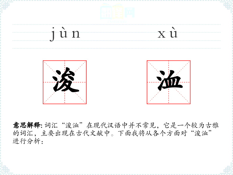 词汇“浚洫”在现代汉语中并不常见,它是一个较为古雅的词汇,主要出现在古代文献中。下面我将从各个方面对“浚洫”进行分析: