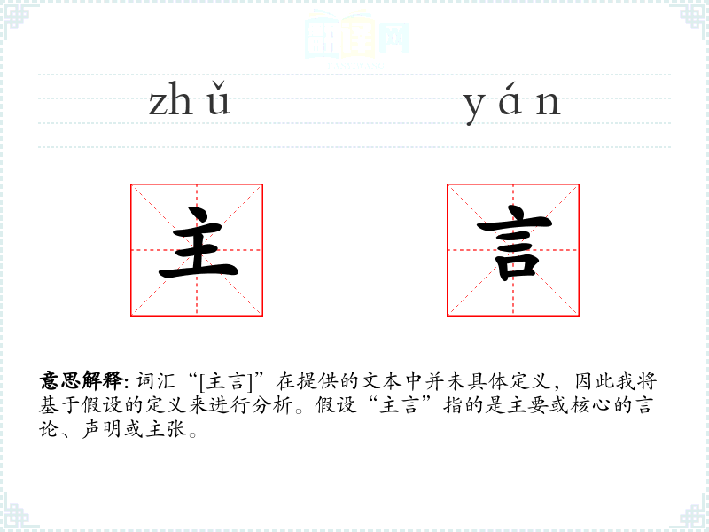 词汇“[主言]”在提供的文本中并未具体定义,因此我将基于假设的定义来进行分析。假设“主言”指的是主要或核心的言论、声明或主张。