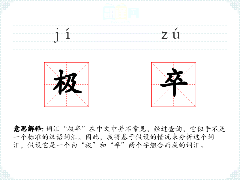 词汇“极卒”在中文中并不常见,经过查询,它似乎不是一个标准的汉语词汇。因此,我将基于假设的情况来分析这个词汇,假设它是一个由“极”和“卒”两个字组合而成的词汇。