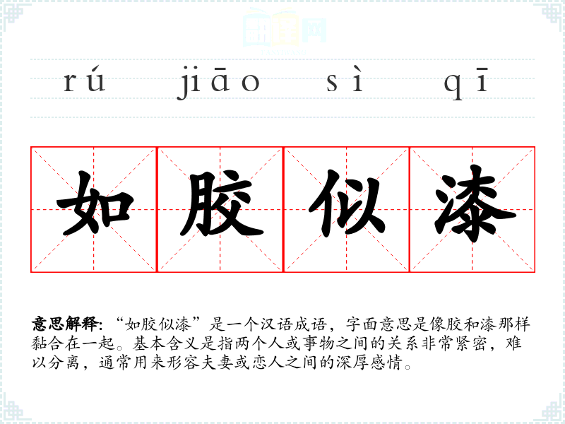 - 文学:在文学作品中,“如胶似漆”常用来描绘人物之间的亲密关系,如《红楼梦》中贾宝玉和林黛玉的情感。