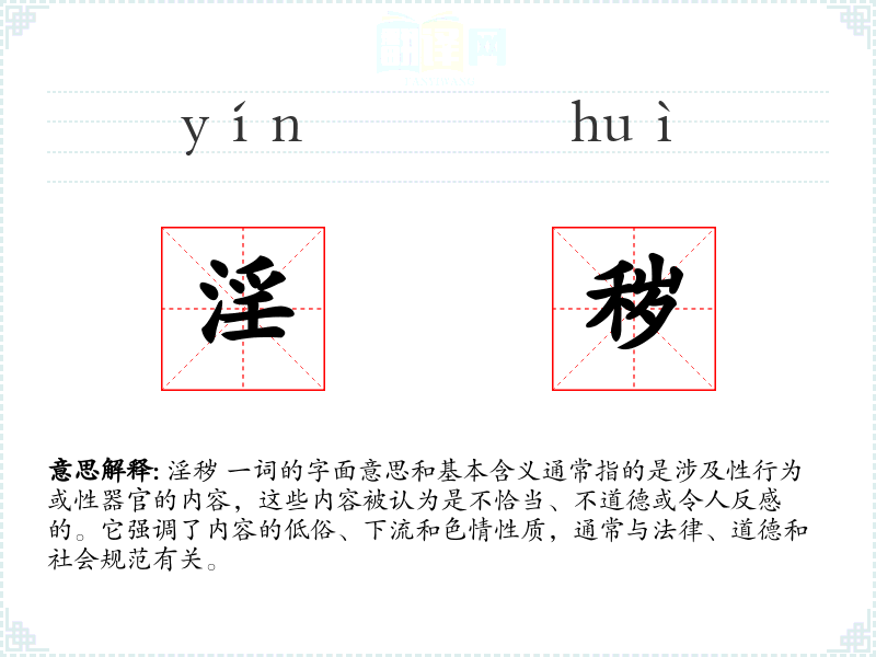 - 口语:在日常对话中,人们可能用“淫秽”来形容某些不当的笑话、言论或行为。