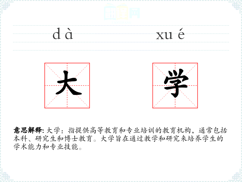 "大学"的意思解释、大学是什么意思由翻译网汉语词典查词提供。