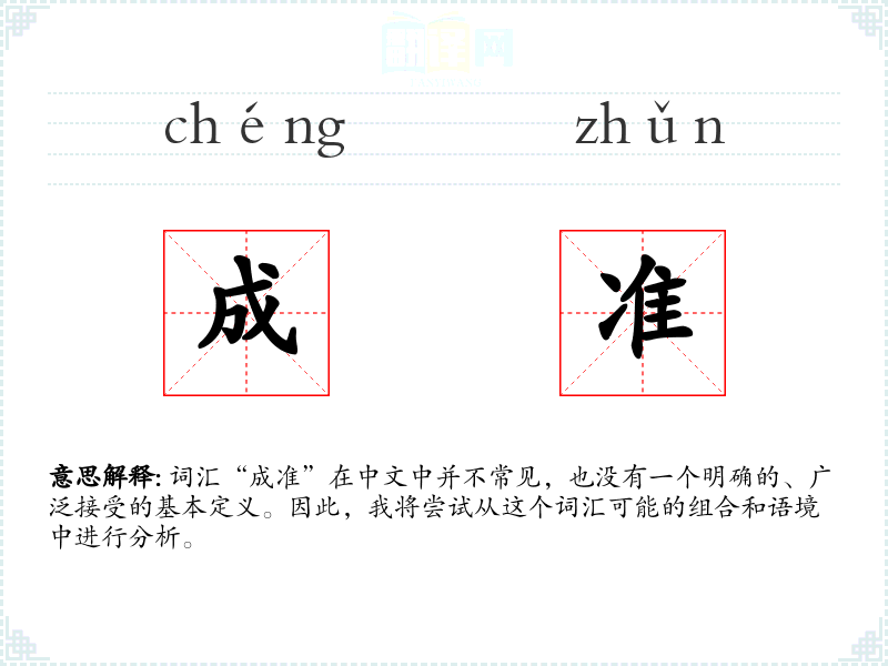由于“成准”不是一个常用词汇,它在不同语言或文化中的对应词汇可能不存在。如果需要表达类似的概念,可能会使用其他更常见的词汇。