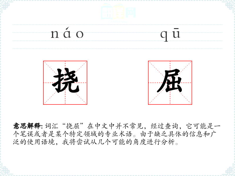 词汇“挠屈”在中文中并不常见,经过查询,它可能是一个笔误或者是某个特定领域的专业术语。由于缺乏具体的信息和广泛的使用语境,我将尝试从几个可能的角度进行分析。