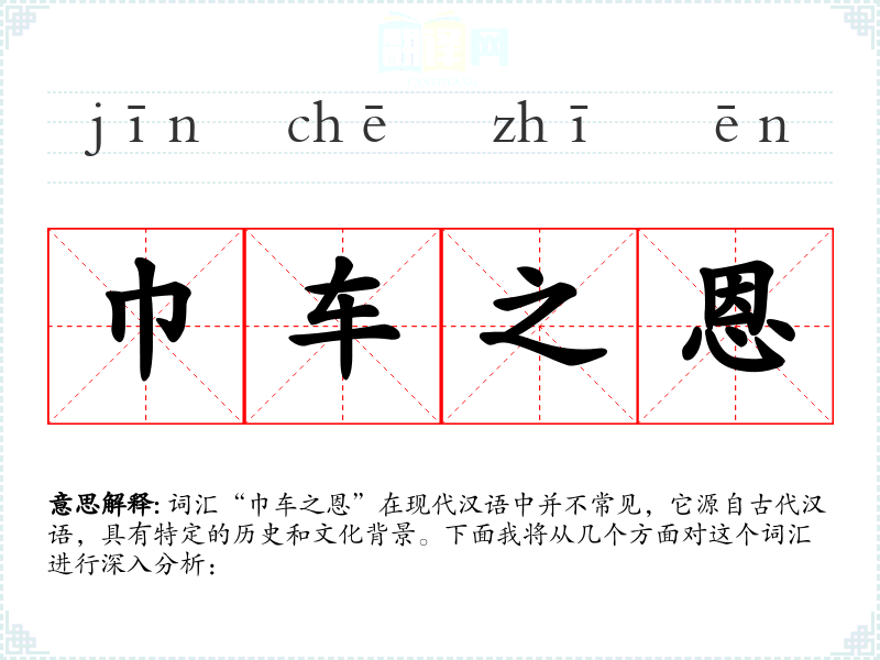 词汇“巾车之恩”在现代汉语中并不常见,它源自古代汉语,具有特定的历史和文化背景。下面我将从几个方面对这个词汇进行深入分析: