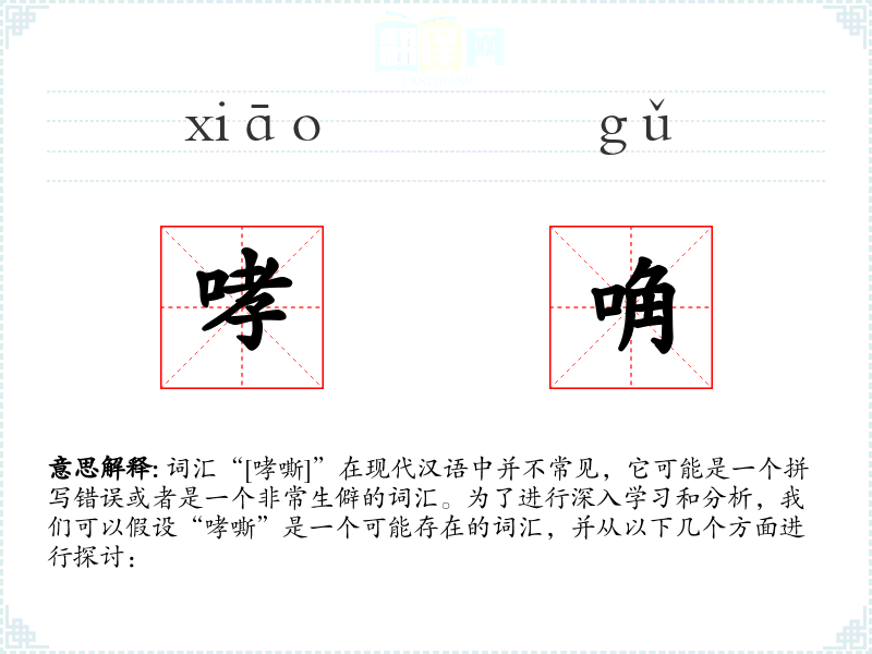 词汇“[哮嘶]”在现代汉语中并不常见,它可能是一个拼写错误或者是一个非常生僻的词汇。为了进行深入学*和分析,我们可以假设“哮嘶”是一个可能存在的词汇,并从以下几个方面进行探讨:
