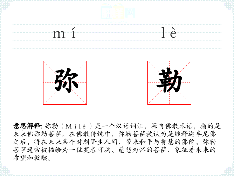 - 反义词:无(由于弥勒是一个特定的**概念,通常没有直接的反义词)