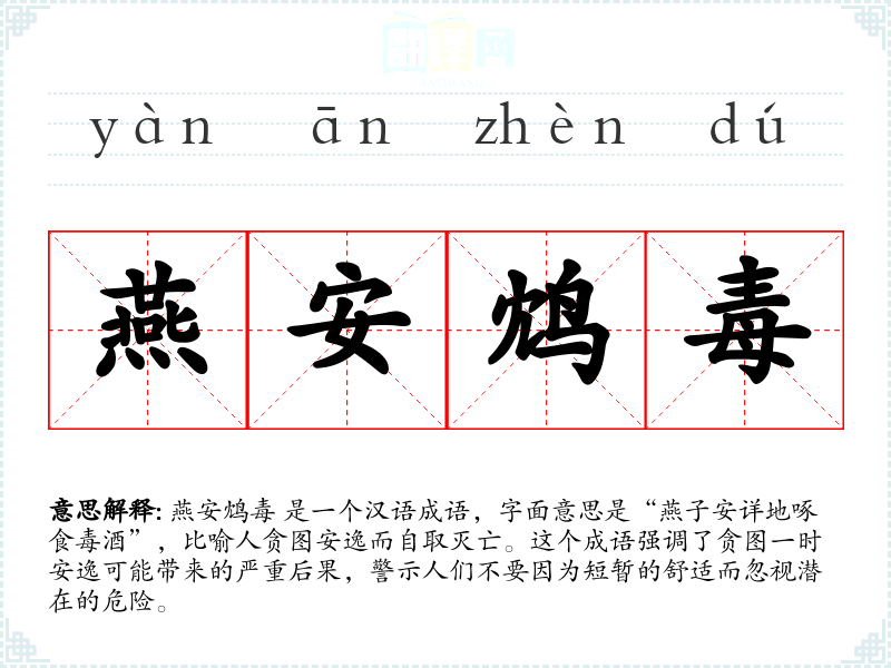 在传统文化中,燕安鸩毒** 反映了儒家思想中对于安逸和享乐的警惕态度。这个成语强调了在任何情况下都应该保持警惕,不应因为短暂的舒适而忽视潜在的危险。