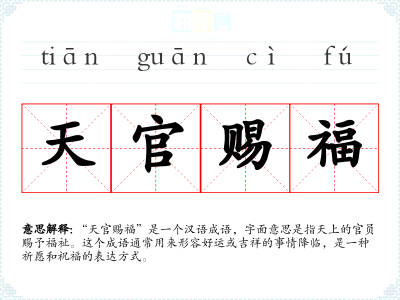 - 福星高照:形容好运连连,与“天官赐福”意思相近。