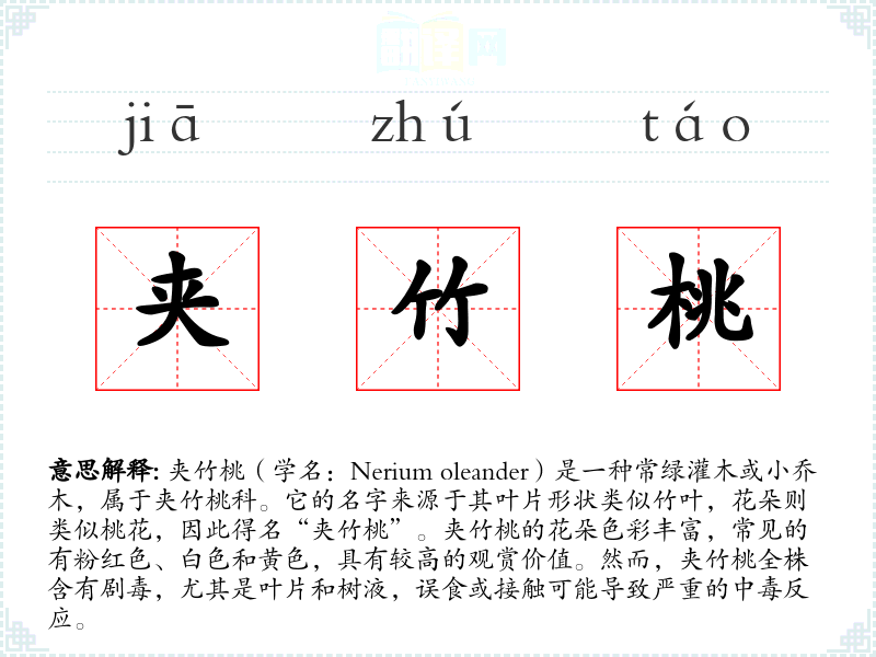 "夹竹桃"的意思解释、夹竹桃是什么意思由翻译网汉语词典查词提供。
