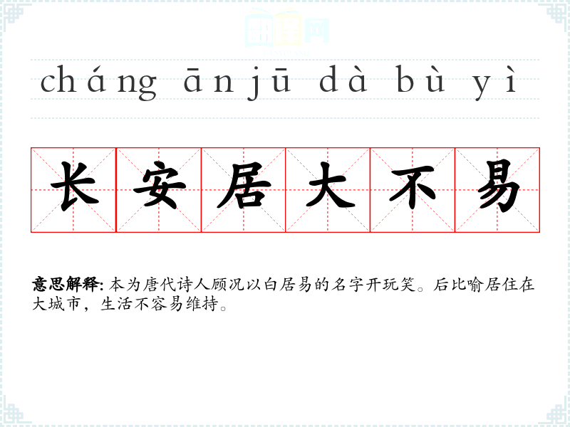 繁体長安居大不易