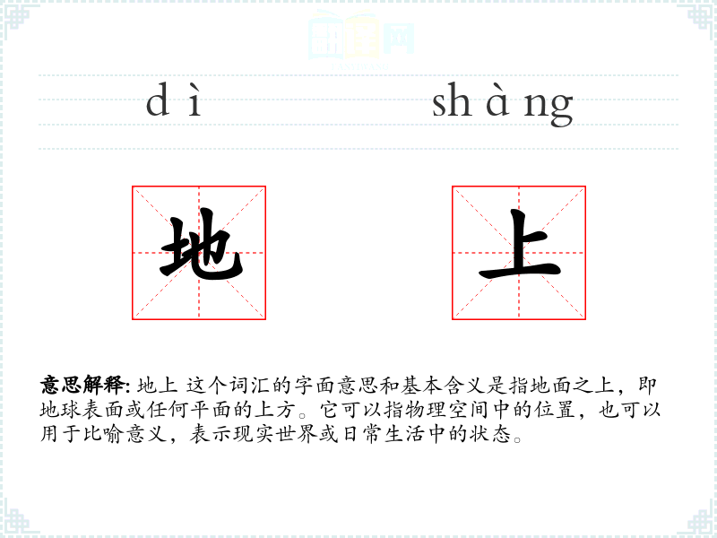 "地上"的意思解释、地上是什么意思由翻译网汉语词典查词提供。