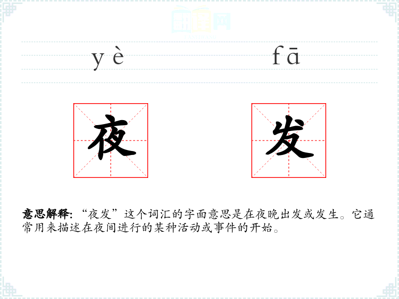 “夜发”这个词汇在中文中的使用历史悠久,其词源直接来源于“夜”和“发”两个字的组合。在古代文学和文献中,这个词汇就已经出现,并且在现代汉语中仍然保持其基本含义。