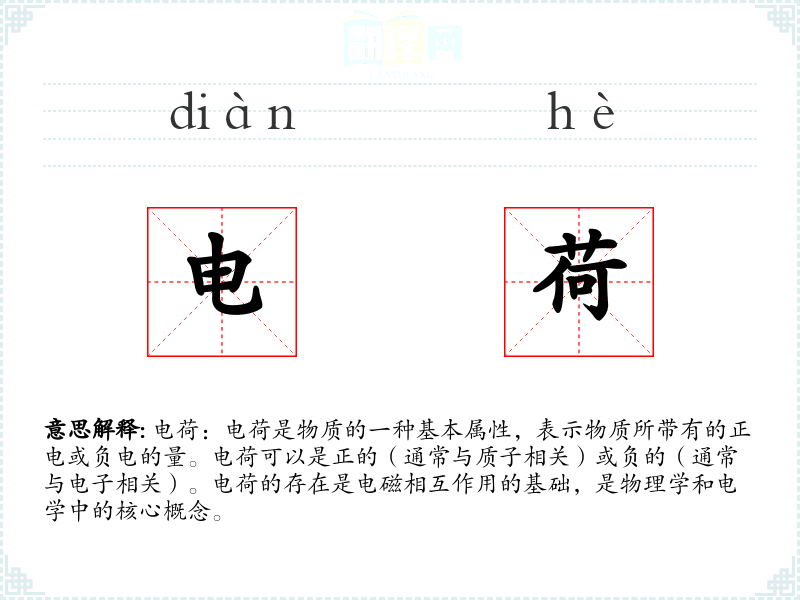 - 反义词:无(电荷本身是一个基本属性,没有直接的反义词)