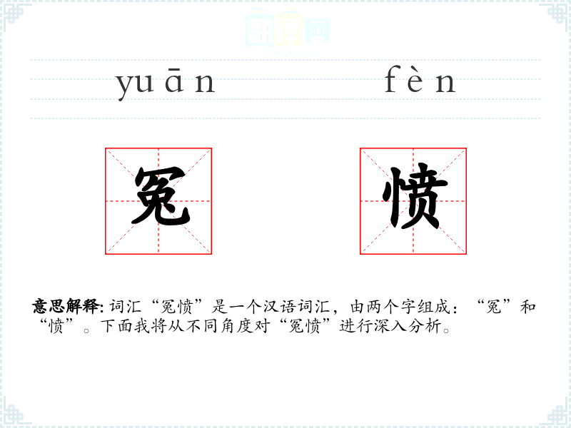 词汇“冤愤”是一个汉语词汇,由两个字组成:“冤”和“愤”。下面我将从不同角度对“冤愤”进行深入分析。