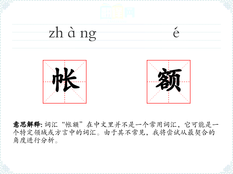 - 反义词:(由于“帐额”不是一个常用词汇,反义词可能不适用)