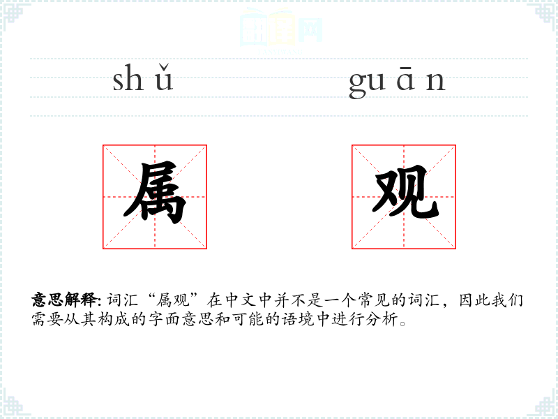 - 反义词:无(由于“属观”不是一个常用词汇,反义词可能不明显)