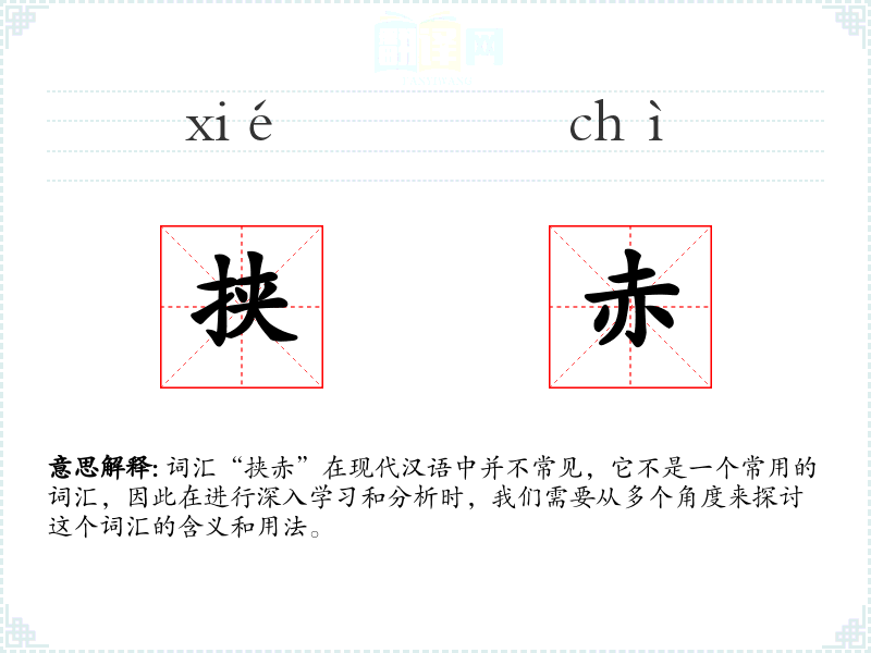 词汇“挟赤”在现代汉语中并不常见,它不是一个常用的词汇,因此在进行深入学习和分析时,我们需要从多个角度来探讨这个词汇的含义和用法。