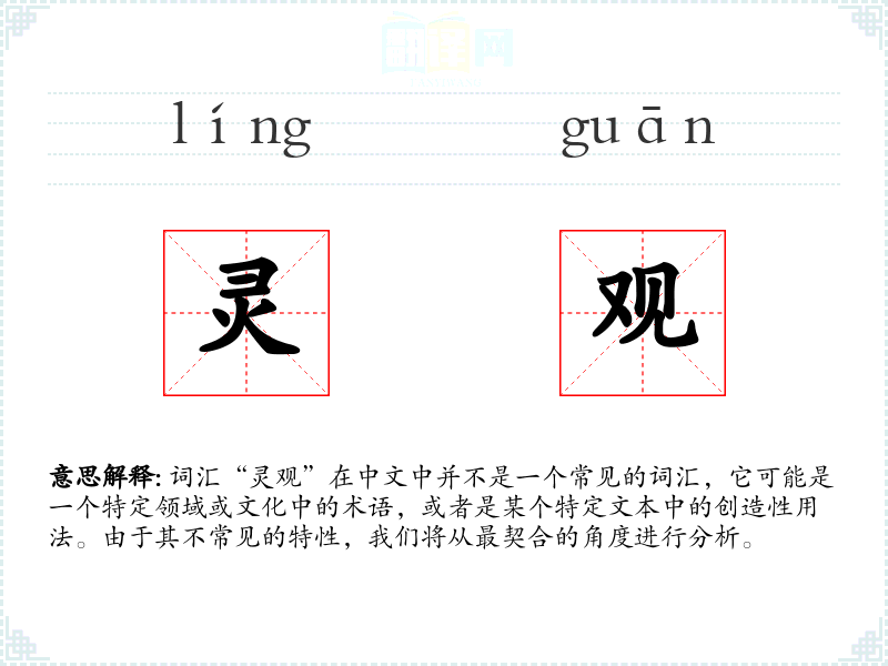 词汇“灵观”在中文中并不是一个常见的词汇,它可能是一个特定领域或文化中的术语,或者是某个特定文本中的创造性用法。由于其不常见的特性,我们将从最契合的角度进行分析。