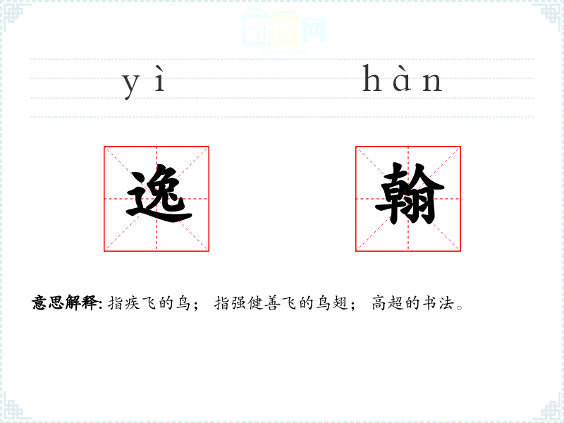 指疾飞的鸟; 指强健善飞的鸟翅; 高超的书法。