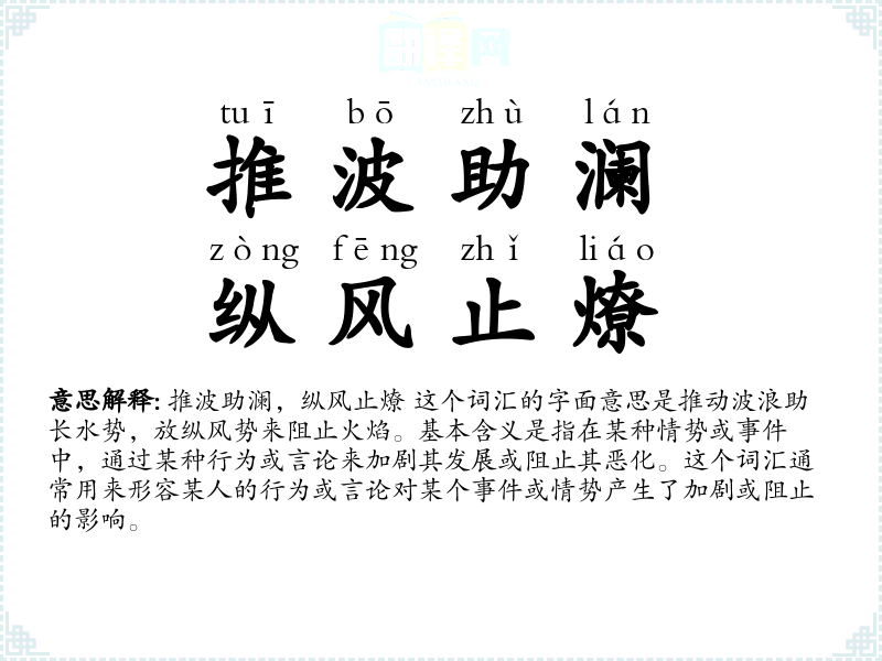 推波助澜,纵风止燎的分字解释