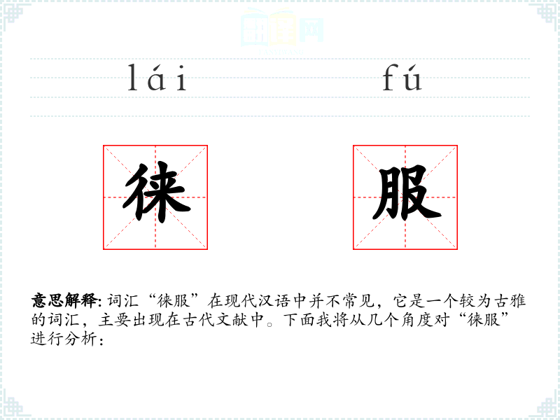 词汇“徕服”在现代汉语中并不常见,它是一个较为古雅的词汇,主要出现在古代文献中。下面我将从几个角度对“徕服”进行分析: