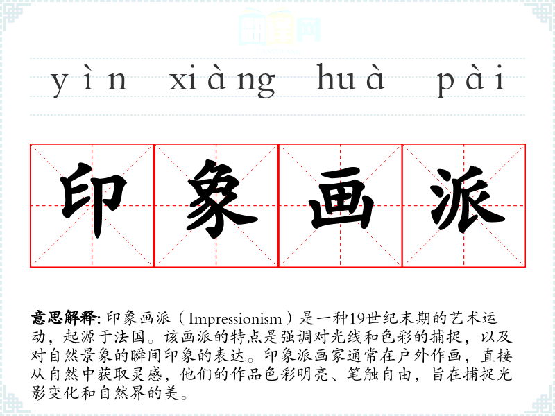 通过对“印象画派”的深入学*,我更加理解了这一艺术*对现代艺术的影响。它不仅改变了绘画的方式,也影响了人们对美的感知和表达。在我的语言学和表达中,了解和运用“印象画派”这一词汇,可以帮助我更准确地描述和理解艺术作品,以及它们所传达的情感和意义。