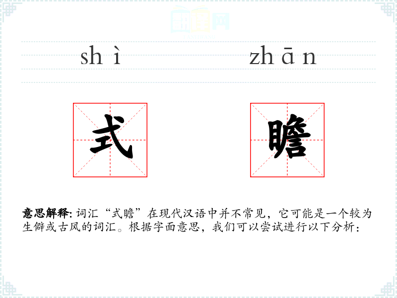 词汇“式瞻”在现代汉语中并不常见,它可能是一个较为生僻或古风的词汇。根据字面意思,我们可以尝试进行以下分析: