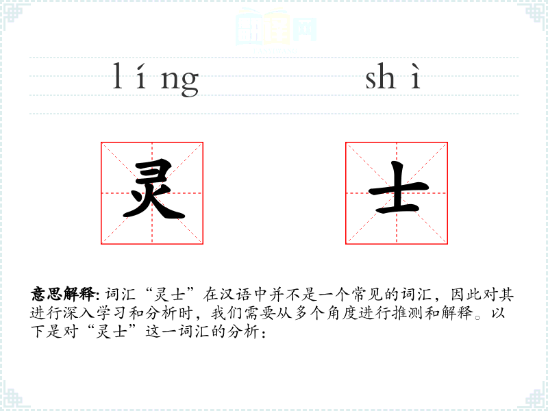 词汇“灵士”在汉语中并不是一个常见的词汇,因此对其进行深入学*和分析时,我们需要从多个角度进行推测和解释。以下是对“灵士”这一词汇的分析: