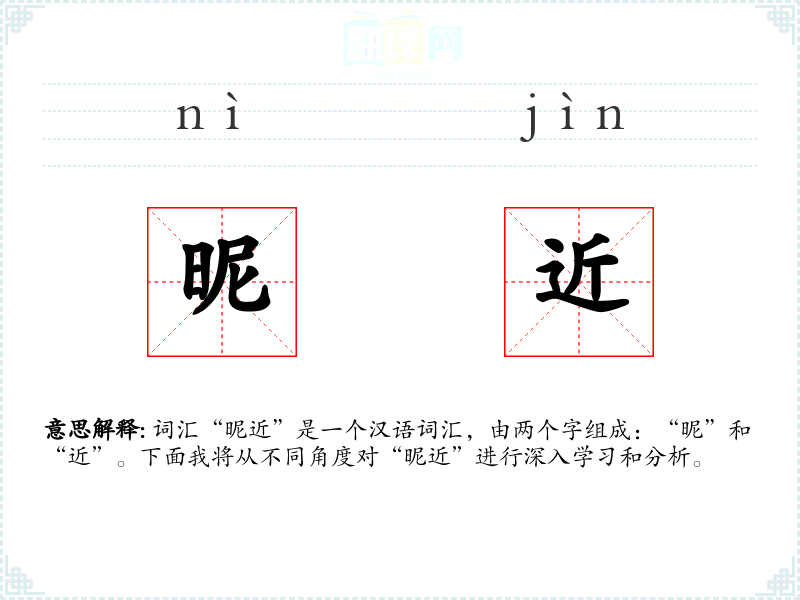 词汇“昵近”是一个汉语词汇,由两个字组成:“昵”和“近”。下面我将从不同角度对“昵近”进行深入学*和分析。