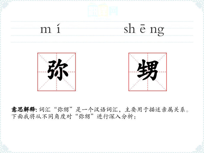 “弥甥”作为一个描述亲属关系的词汇,虽然在现代汉语中使用较少,但在特定的文化和语境中仍具有重要意义。了解和掌握这样的词汇有助于更准确地表达和理解复杂的家族关系。