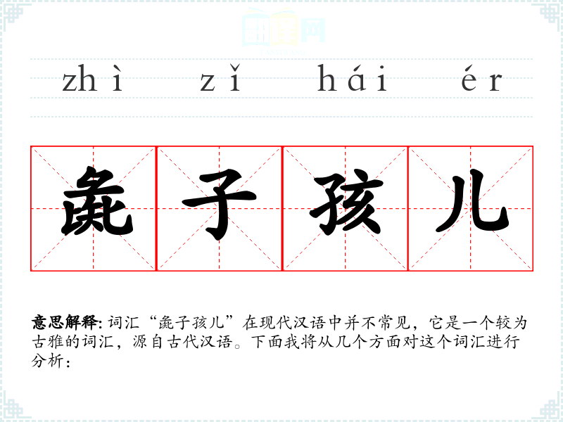 词汇“彘子孩儿”在现代汉语中并不常见,它是一个较为古雅的词汇,源自古代汉语。下面我将从几个方面对这个词汇进行分析:
