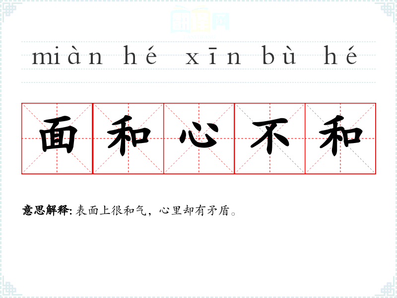 "面和心不和"的意思解释、面和心不和是什么意思由翻译网汉语词典查词提供。