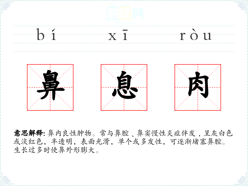 鼻内良性肿物。常与鼻腔﹑鼻窦慢性炎症伴发﹐呈灰白色或淡红色,半透明,