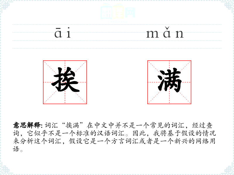 词汇“挨满”在中文中并不是一个常见的词汇,经过查询,它似乎不是一个标准的汉语词汇。因此,我将基于假设的情况来分析这个词汇,假设它是一个方言词汇或者是一个新兴的网络用语。