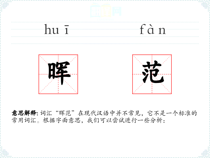 词汇“晖范”在现代汉语中并不常见,它不是一个标准的常用词汇。根据字面意思,我们可以尝试进行一些分析: