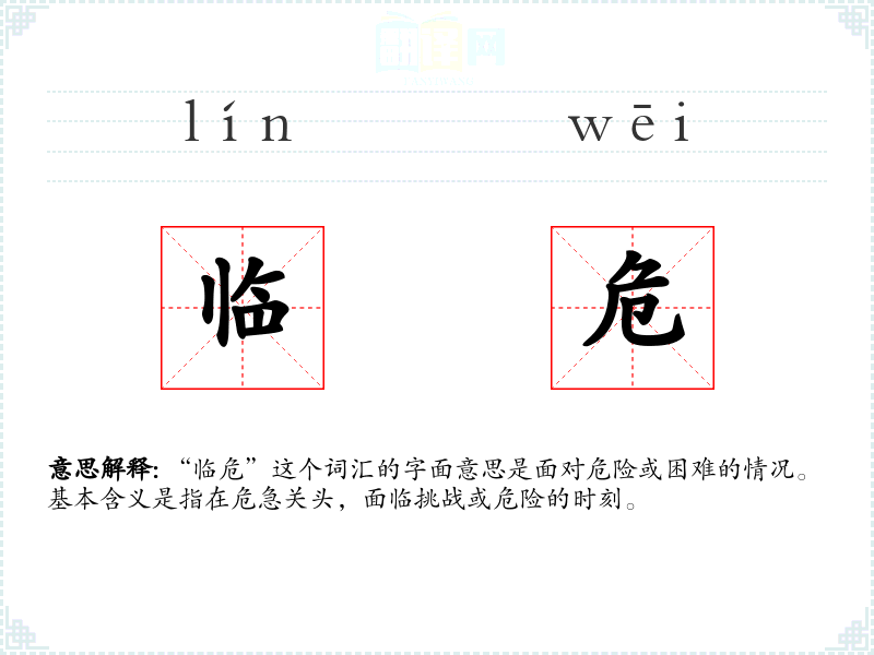 "临危"的意思解释、临危是什么意思由翻译网汉语词典查词提供。