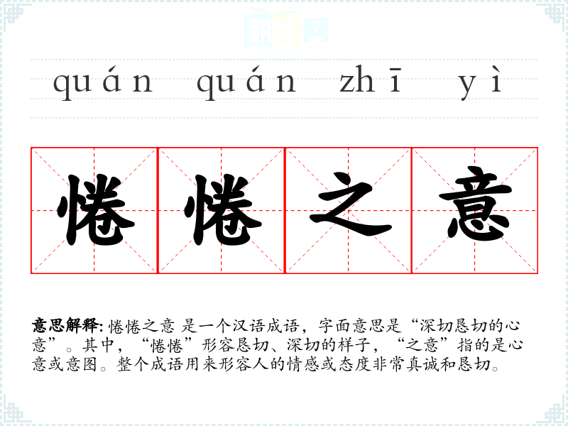 "惓惓之意"的意思解释、惓惓之意是什么意思由翻译网汉语词典查词提供。
