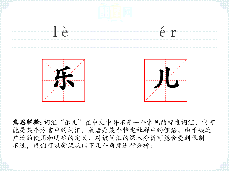 由于“乐儿”不是一个标准词汇,我们无法探讨其词源和历史演变。