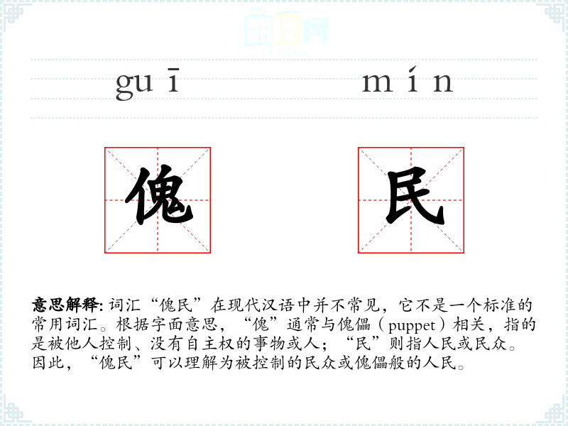 - 演变:随着社会和政治环境的变化,“傀民”这个词汇的使用频率和含义可能有所变化,但总体上保持了被控制的基本含义。
