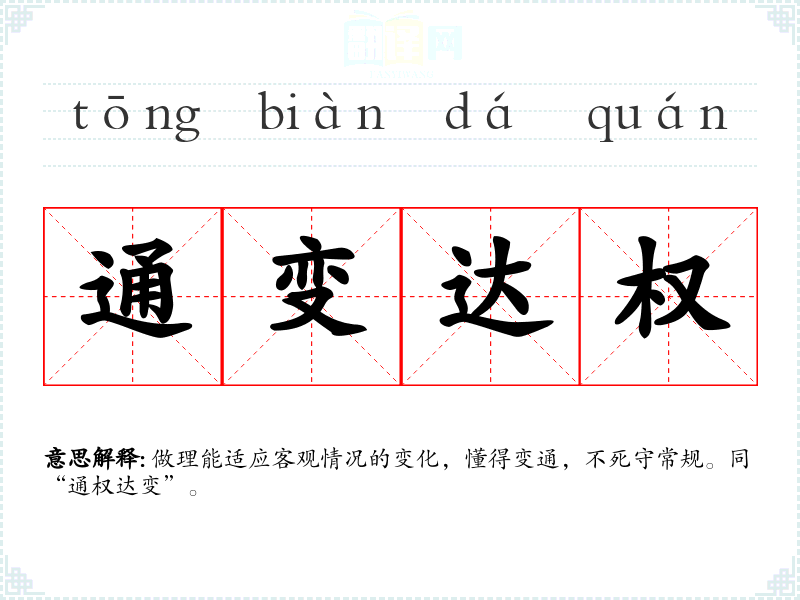 做理能适应客观情况的变化,懂得变通,不死守常规。同“通权达变”。