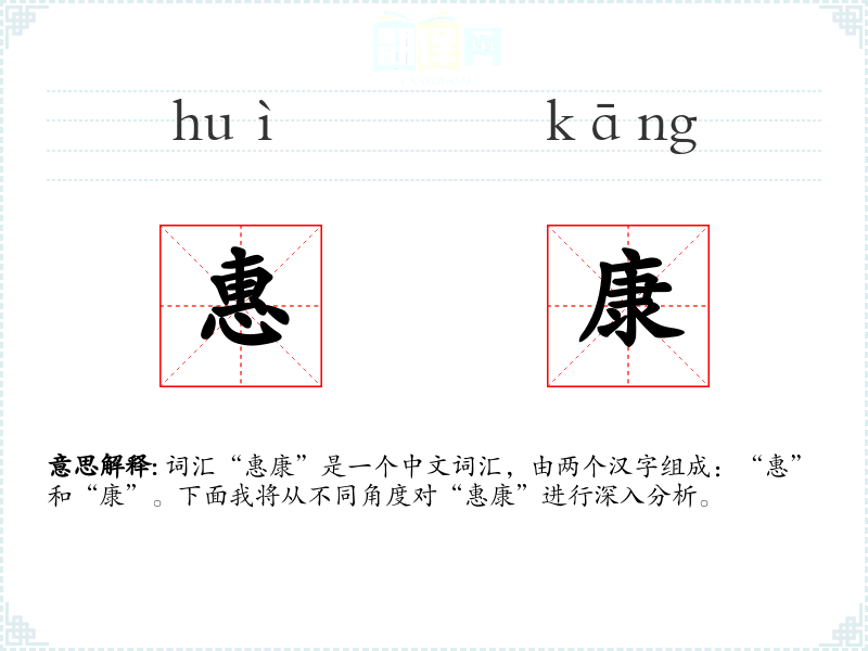 词汇“惠康”是一个中文词汇,由两个汉字组成:“惠”和“康”。下面我将从不同角度对“惠康”进行深入分析。