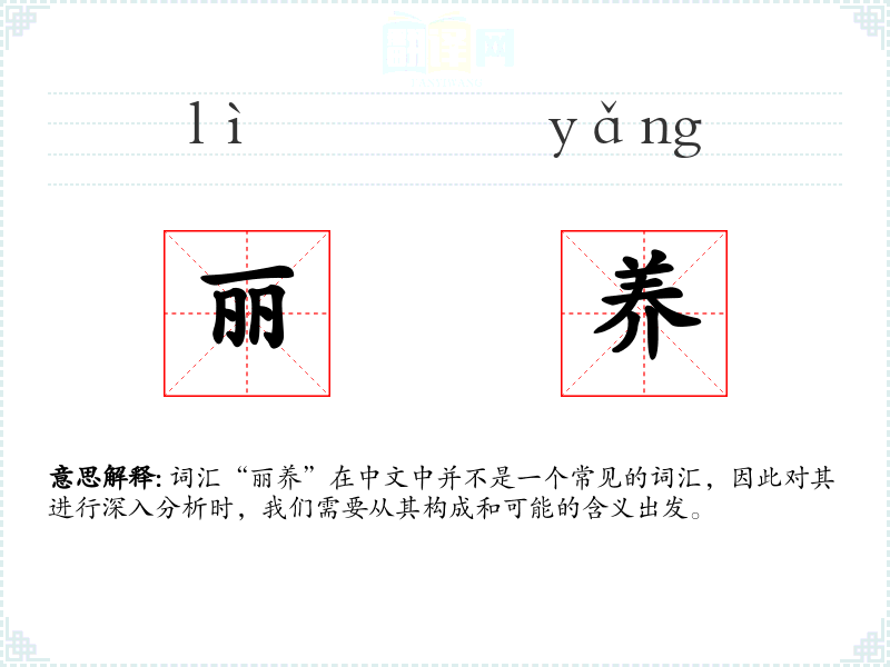词汇“丽养”在中文中并不是一个常见的词汇,因此对其进行深入分析时,我们需要从其构成和可能的含义出发。
