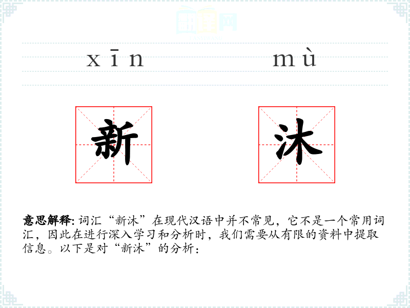 词汇“新沐”在现代汉语中并不常见,它不是一个常用词汇,因此在进行深入学*和分析时,我们需要从有限的资料中提取信息。以下是对“新沐”的分析: