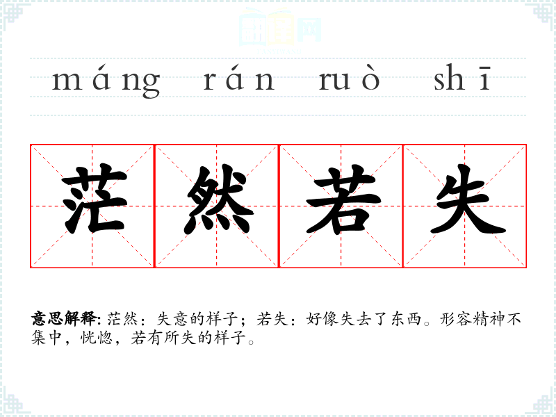 茫然:失意的样子;若失:好像失去了东西。形容精神不集中,恍惚,