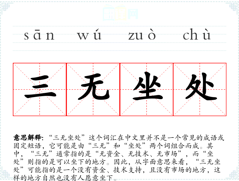 在当前社会,由于经济压力和市场竞争,许多地方或项目可能因为缺乏资金、技术和市场而变得无人问津,这种现象可能促使了“三无坐处”这样的词汇的产生。